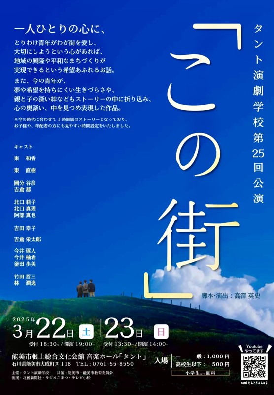 | 連絡事項や アピールポイント | 表現するって本当に素敵で輝く自分を発見できます。しかし、お芝居に触れる機会ってあまりないようにも思います。日常にあまりない世界だからこそ不安や怖さもあるかもしれません。そこで今回は新たに劇団を立ち上げ、未経験の方や初心者の方を中心に劇団員を募集いたします。講師は日芸プロ所属の俳優、高澤英史さんです。芸能事務所直轄の劇団ですので舞台のお芝居と映像のお芝居を両方学べます。また舞台を創り上げていく中でドラマでのエキストラ等の体験ができるかもしれません。撮影現場のプロの世界を見ることもでき意識が高まると思います。 劇団 THEひでちゃんの思いは“ロトスランド“その名の通り、“夢のように素晴らしい場所“を現実の生活の中で創っていく事を目的として、劇団員一人ひとりがお芝居を通して自分を磨き、自分にしかない素晴らしさを自らが発見し、自信をつけてそれぞれの人生の中で幸せになっていってもらいたいと真剣に思っています。 ご興味のある方、ご質問のある方はまずは劇団日芸座、主宰の高澤までお問い合わせください。 電話番号は09038633776です。 稽古は日芸プロ内のレッスンスタジオで行います。 応募締め切りは2025年、11月末まで。 2025年11月中旬より活動を開始いたします。 どうぞお気軽に来てください、一緒に夢のような素晴らしい場所を作っていきましょう♪ (高澤) |