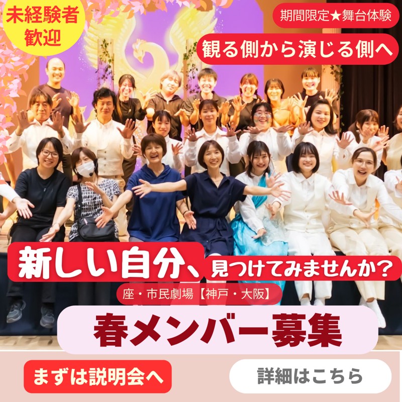 劇団「【大阪/劇団】演劇初心者歓迎(5歳~80歳迄)期間限定劇団「座・大阪市民劇場」」の団員募集情報